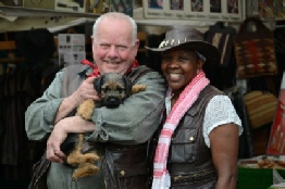 Richard & Happy seen here at one of their shows with “Khaki” their Border Terrier puppy. (He’s the third Khaki Starkie! The first two are Zebutu & Ben their children. Note the brown Land Rover which Richard says he bought to match the family!